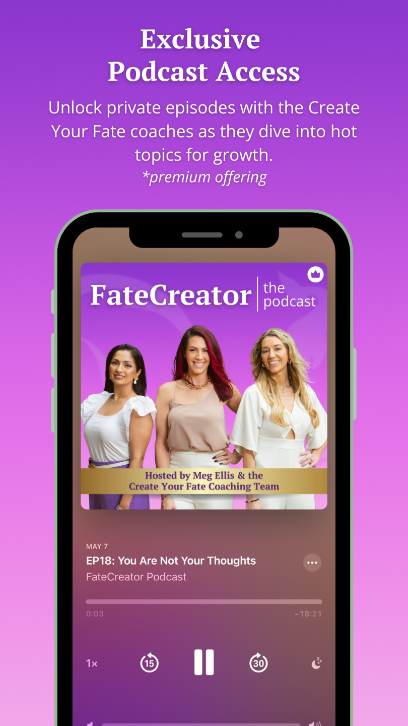 The FateCreator app and all content posted by Meg Ellis and the Create Your Fate Coaching Team is intended solely for informational, educational, and entertainment purposes.