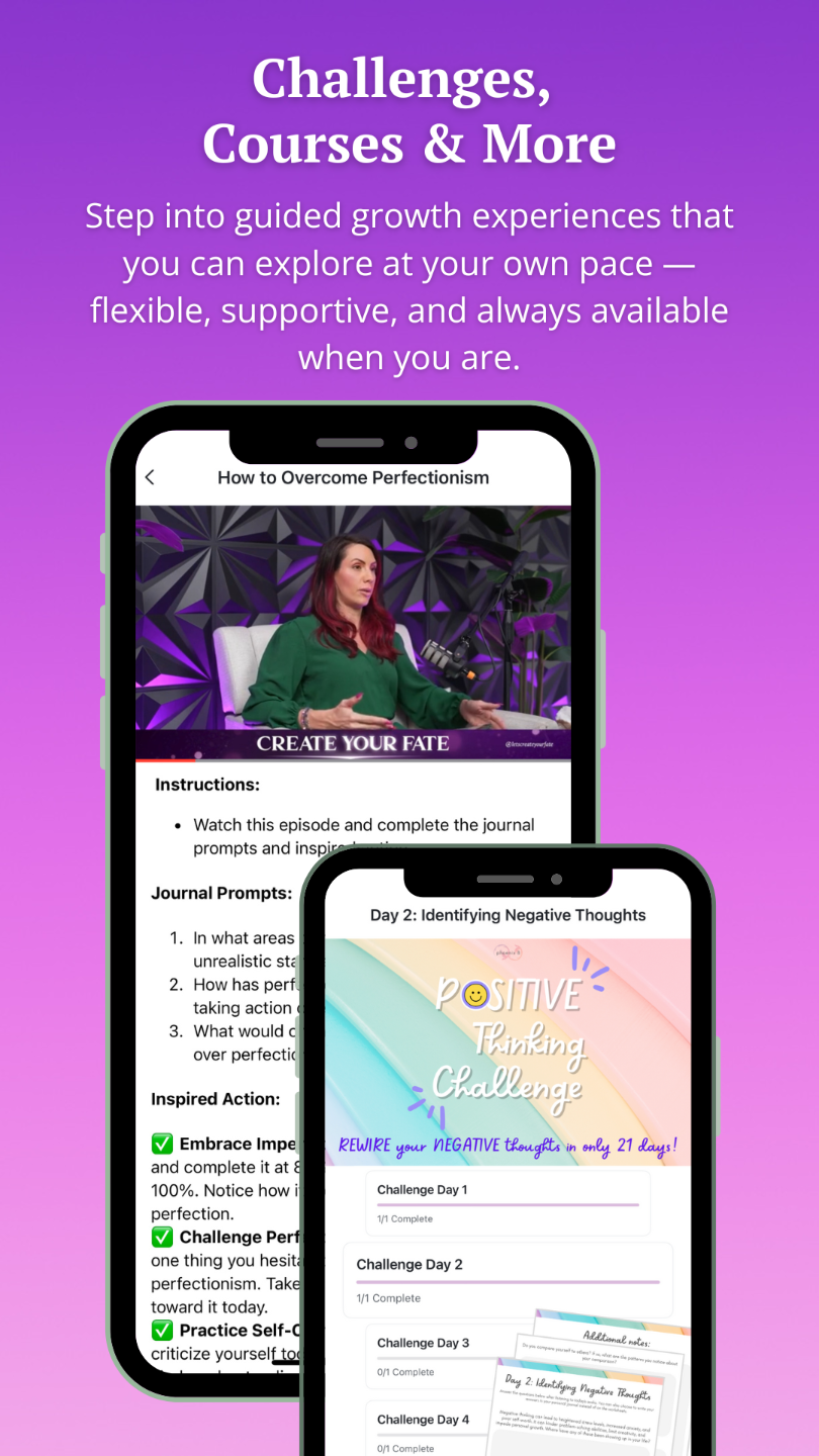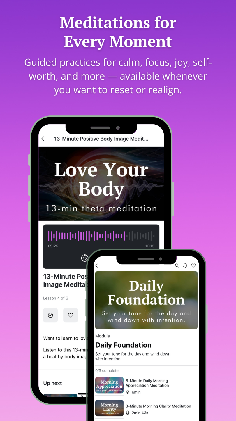 Your thoughts shape how you experience your life. Inside the app, you’ll learn how to shift limiting beliefs, soften negative self-talk, and choose perspectives that support clarity, confidence, and possibility—without forcing yourself to “think positive.”