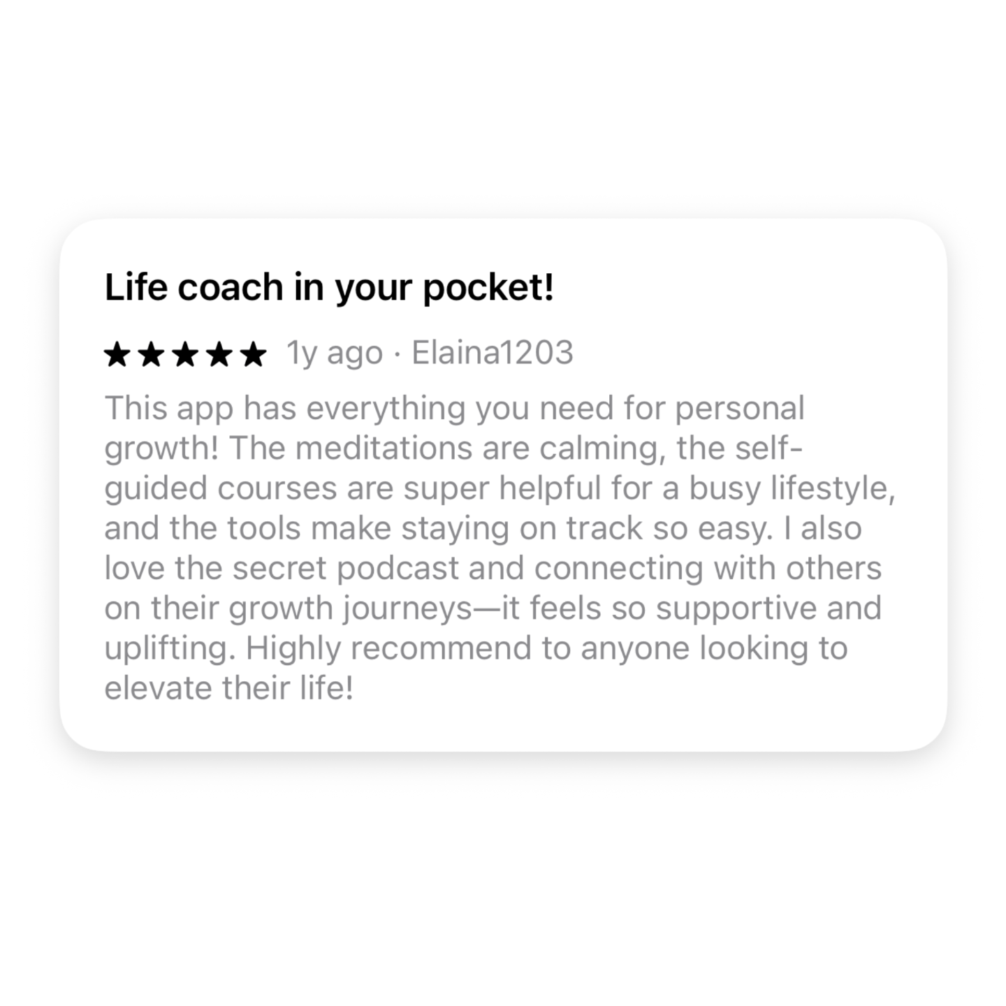 Truly, a life coach in your pocket! Grow on your own timeline — whether you have 5 or 60 minutes, we’ve got your journey covered.