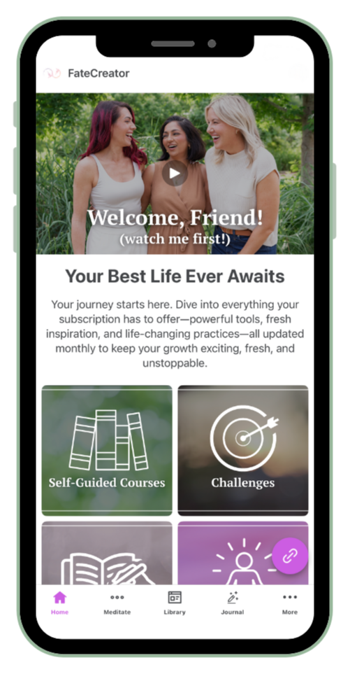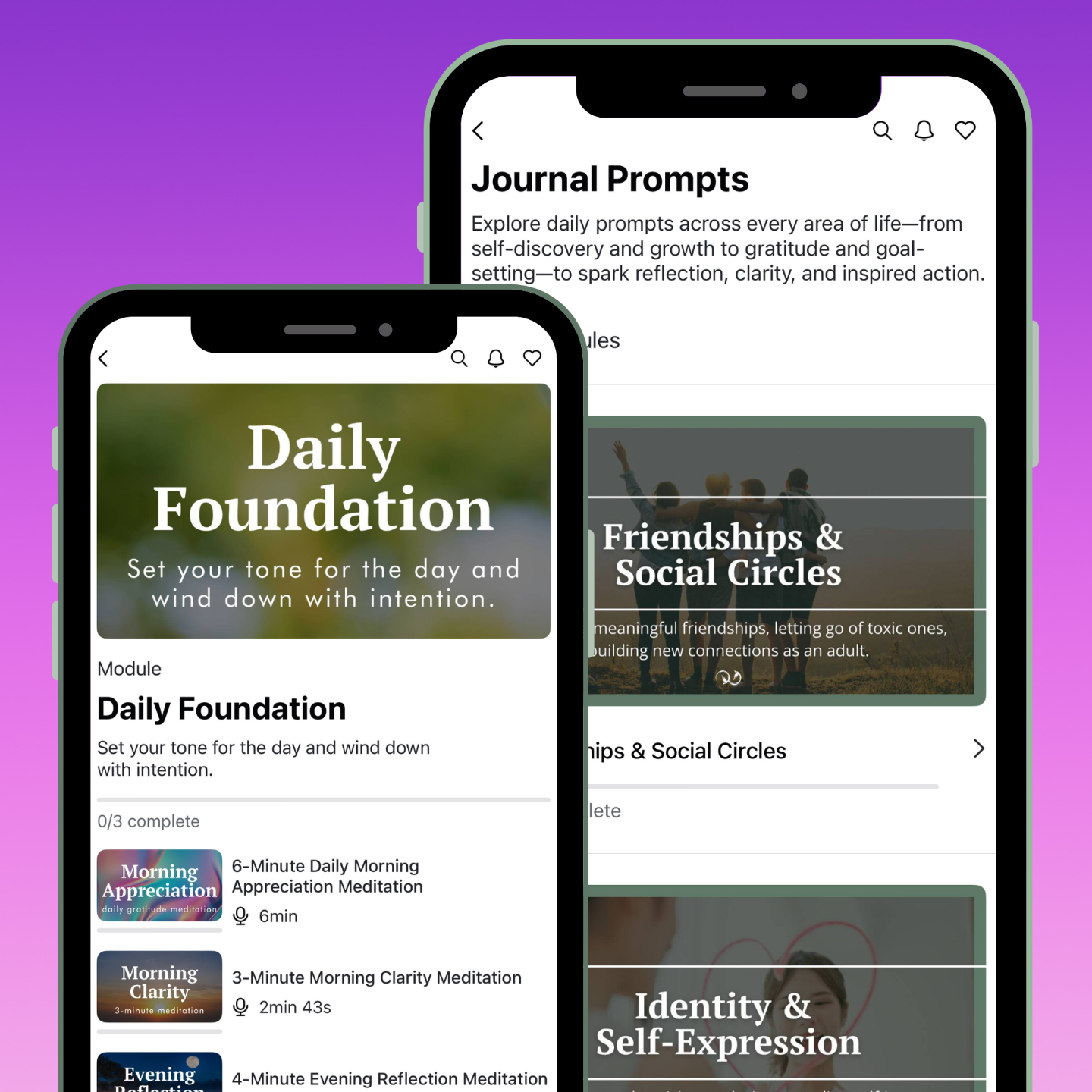 Inside, you’ll find meditations, somatic movement, journal prompts, monthly mantras, mindset tools, live coaching, and community support—designed to fit into real life. Whether you have five minutes or fifty, every feature supports you in building consistency, alignment, and a life you actually feel good living.
