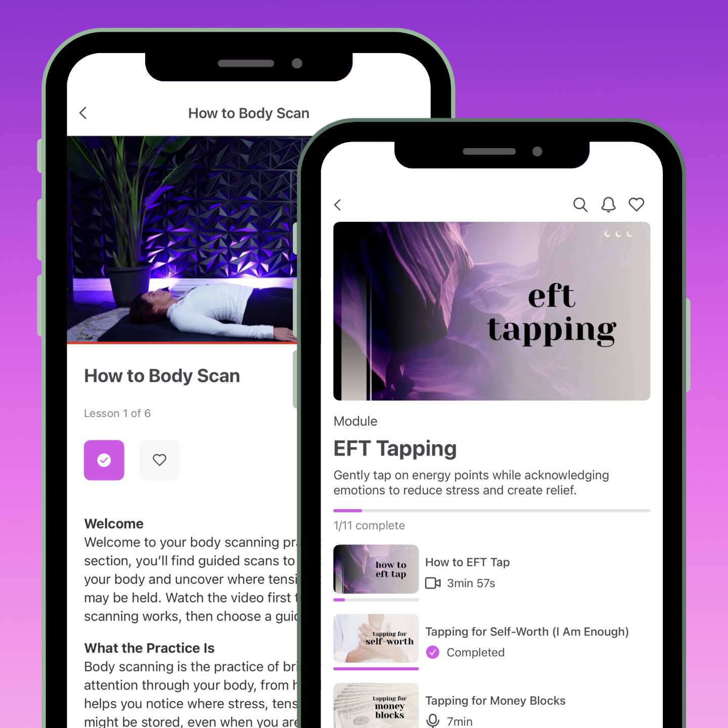 Your body holds onto stress, emotion, and old patterns—often without you realizing it. The app offers gentle somatic practices that help calm your nervous system, release tension, and create a sense of safety so change can actually land and last.