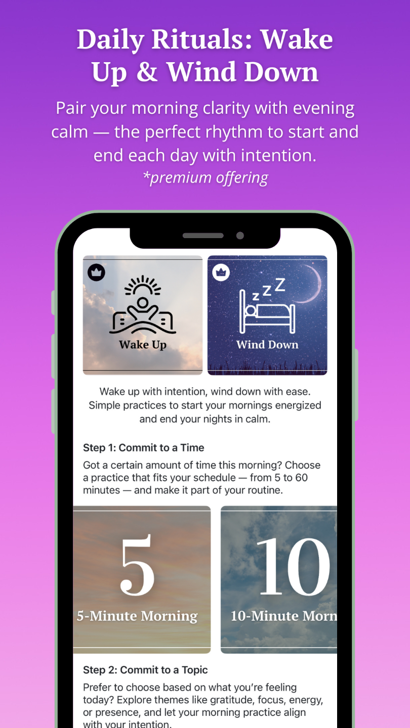 This is where everything comes together. The app supports your connection to purpose, intuition, and alignment through daily rituals, reflection, and intentional practices—helping you live in a way that feels true, grounded, and meaningful.